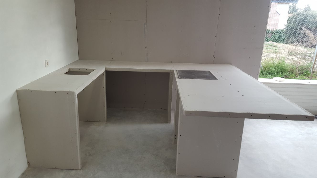 Podemos hacer desde una encimera de cocina a nubes de pladur.También elementos útiles y decorativos como hornacinas en baños ,fosas,candilejas,estanterías etc